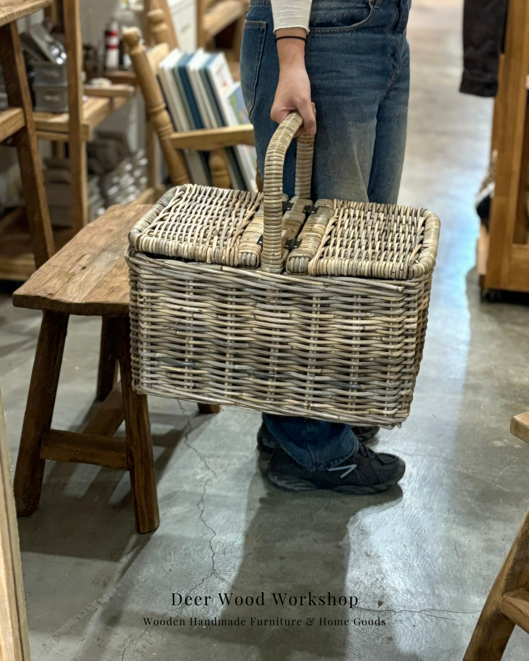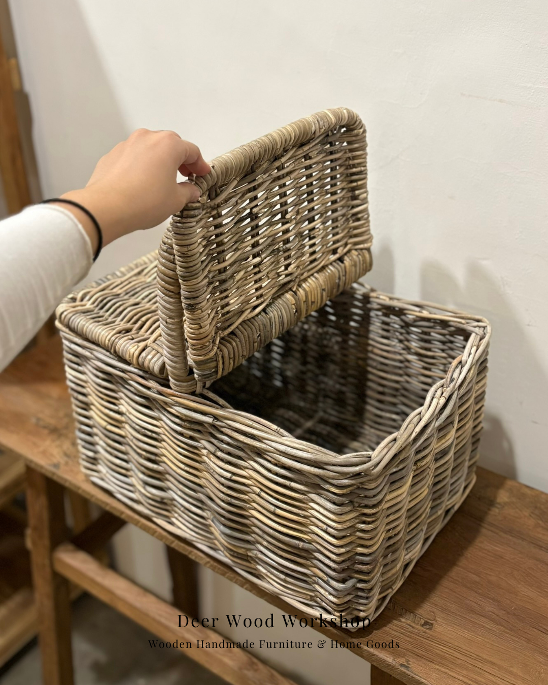 產品名稱:藤編方形野餐籃(附蓋)