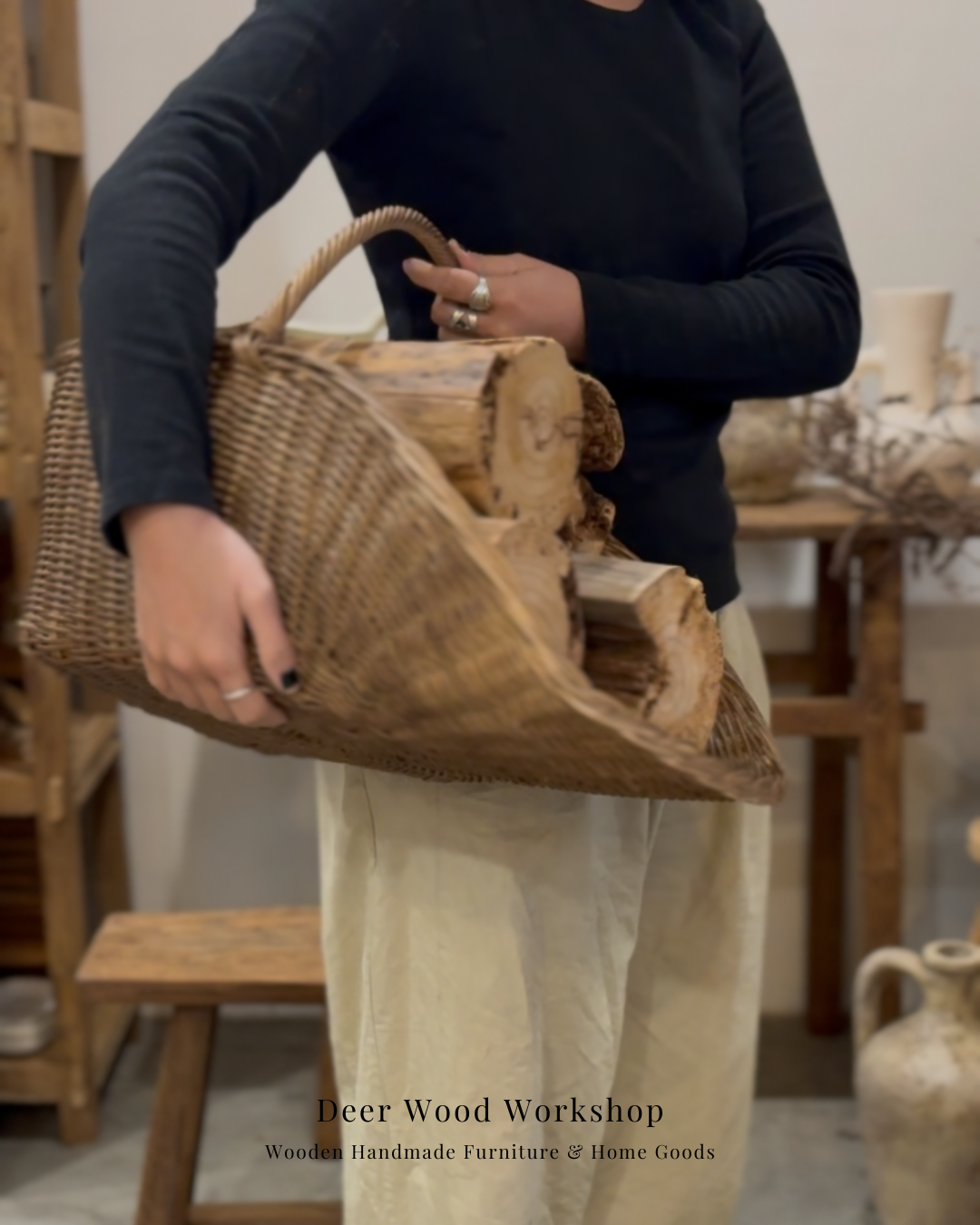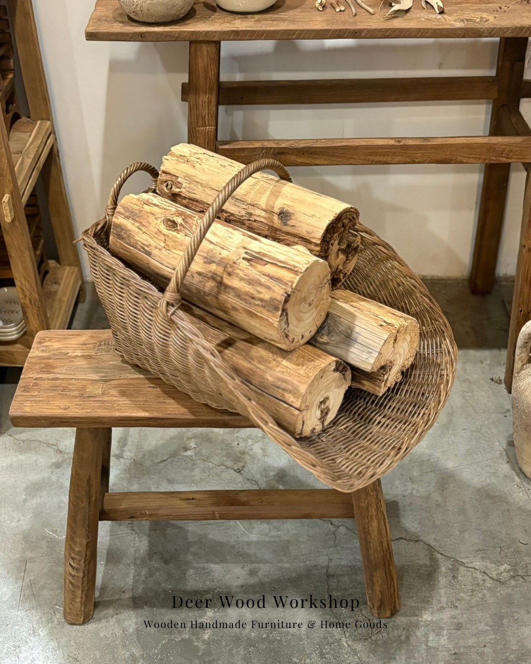 產品名稱:藤編木柴籃(咖色)