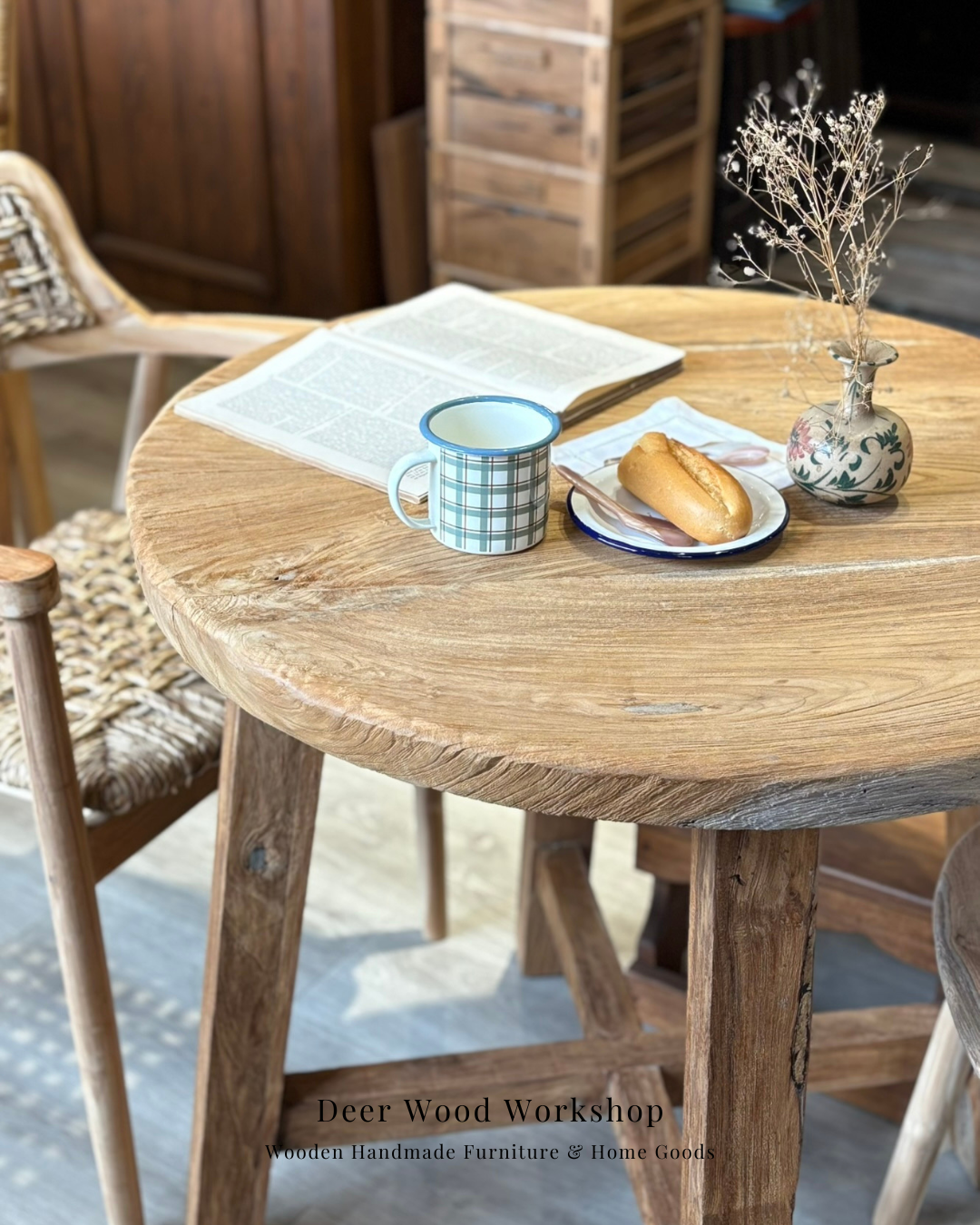 產品名稱:老柚木圓桌 90公分 預購8月到