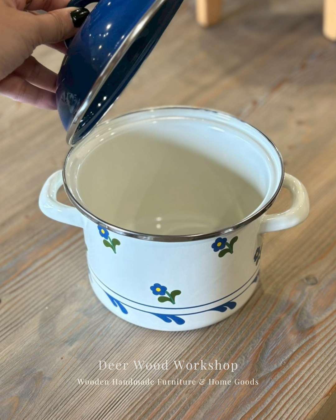 產品名稱:出清-琺瑯藍色小花湯鍋